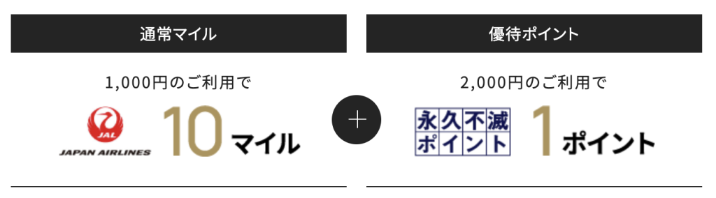 つまり、200万円で25000JALマイル(=還元率1.25%)貯まるので、JALカード特約店以外であれば普通のJALカードより還元率は高いです。