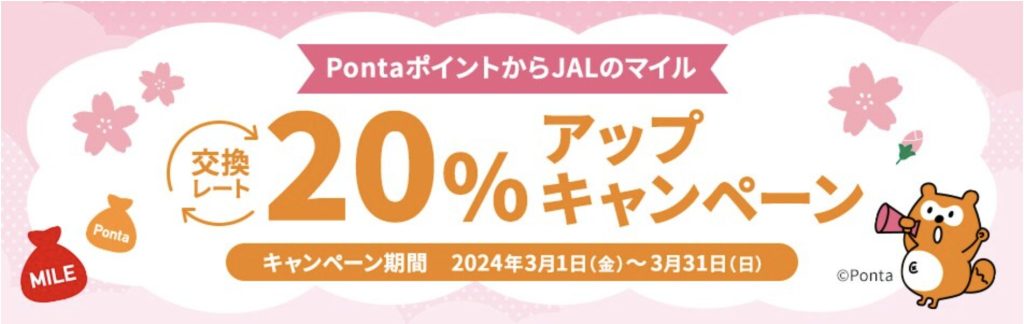 しかし、Pontaポイントについては定期的に交換レート20%アップキャンペーンをやっており、1Pontaポイント=0.6マイルで交換できるときがあります。そういうキャンペーンを狙って変換するのが一番賢いです。