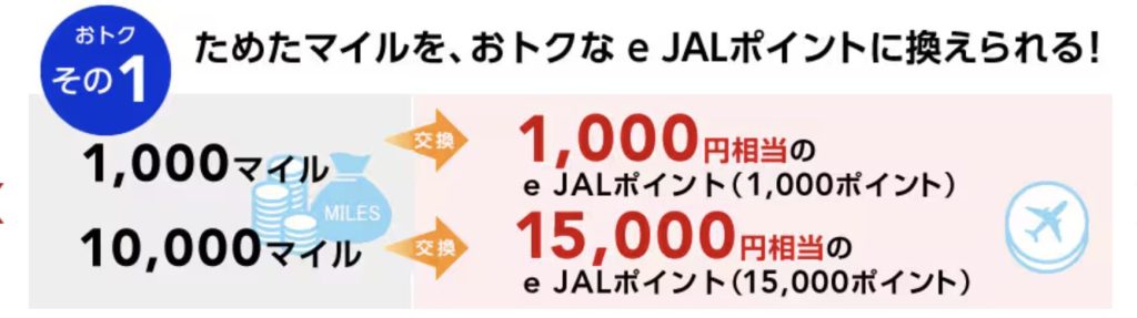 1ポイント=1円の価値で、航空券やツアーの購入に利用できるeJALポイントに交換することができます。