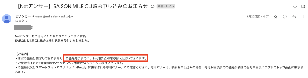 セゾンマイルクラブに加入するには1ヶ月以上かかる